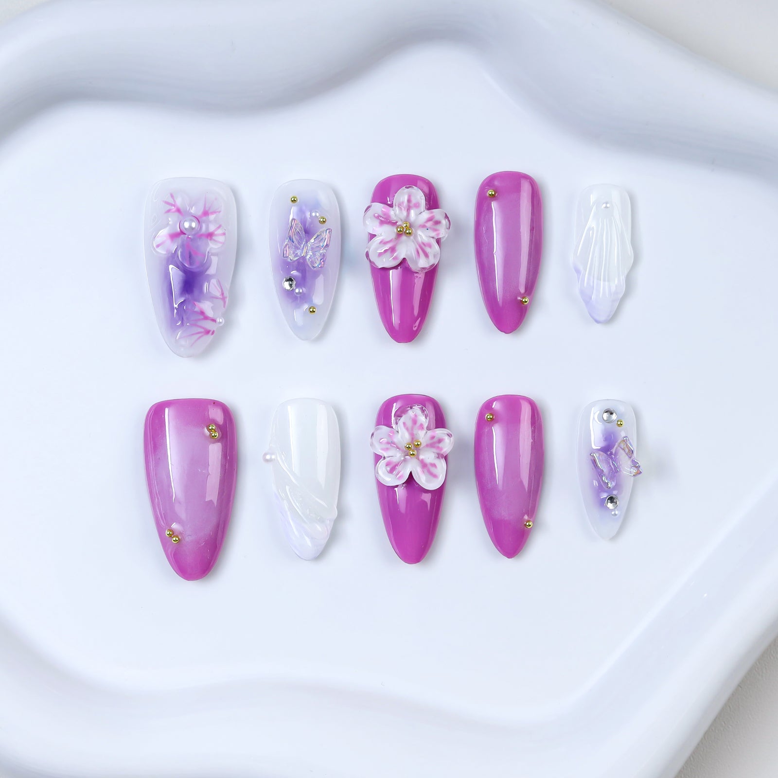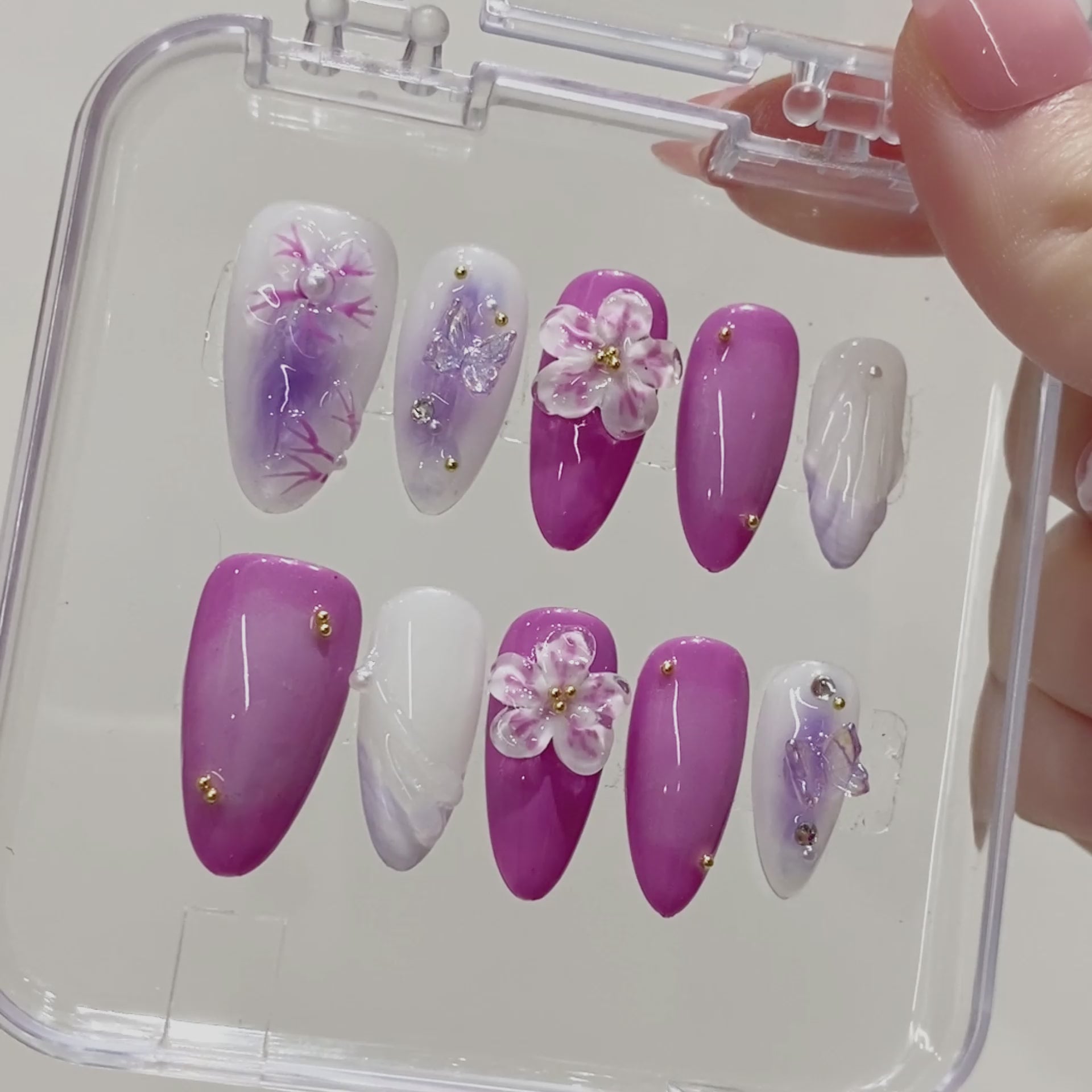 Diy Flower Relief Design Handmade 3d Almond Press on Nails Reusable Acrylic Nails Press on Artificial Fingernails