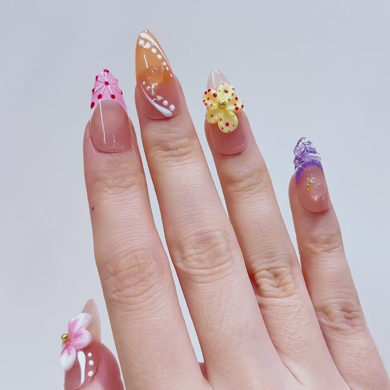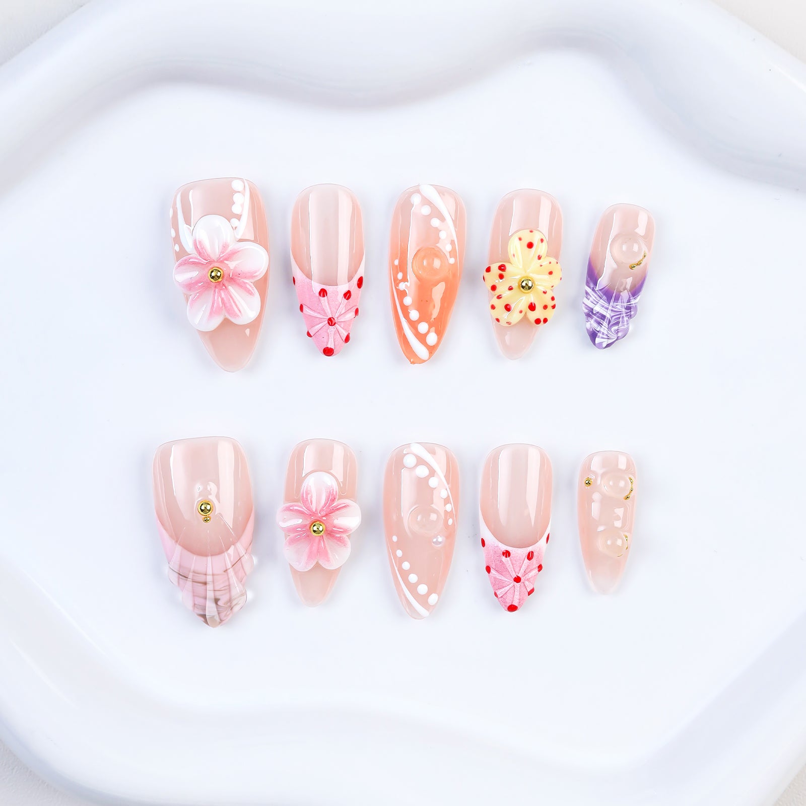 Handmade 3D Flower Design Acrylic False Nails Hot Sale Wholesale Press on Faux Ongles Artificial Fingernails for Women