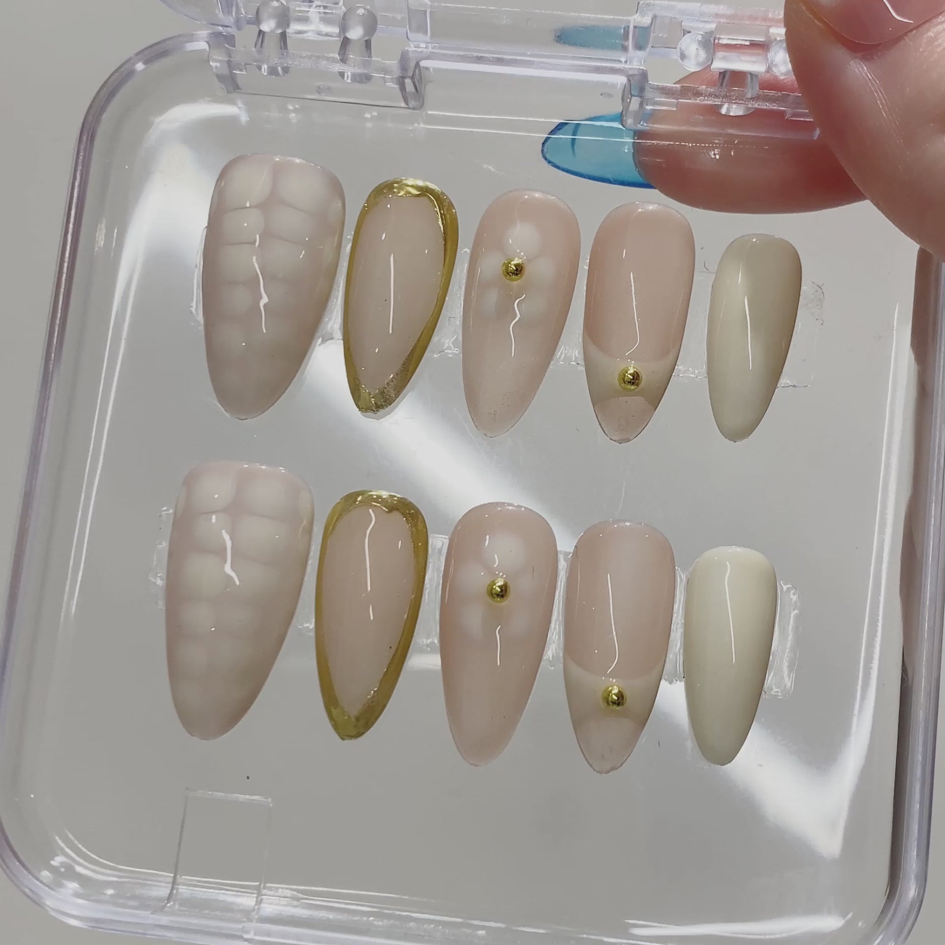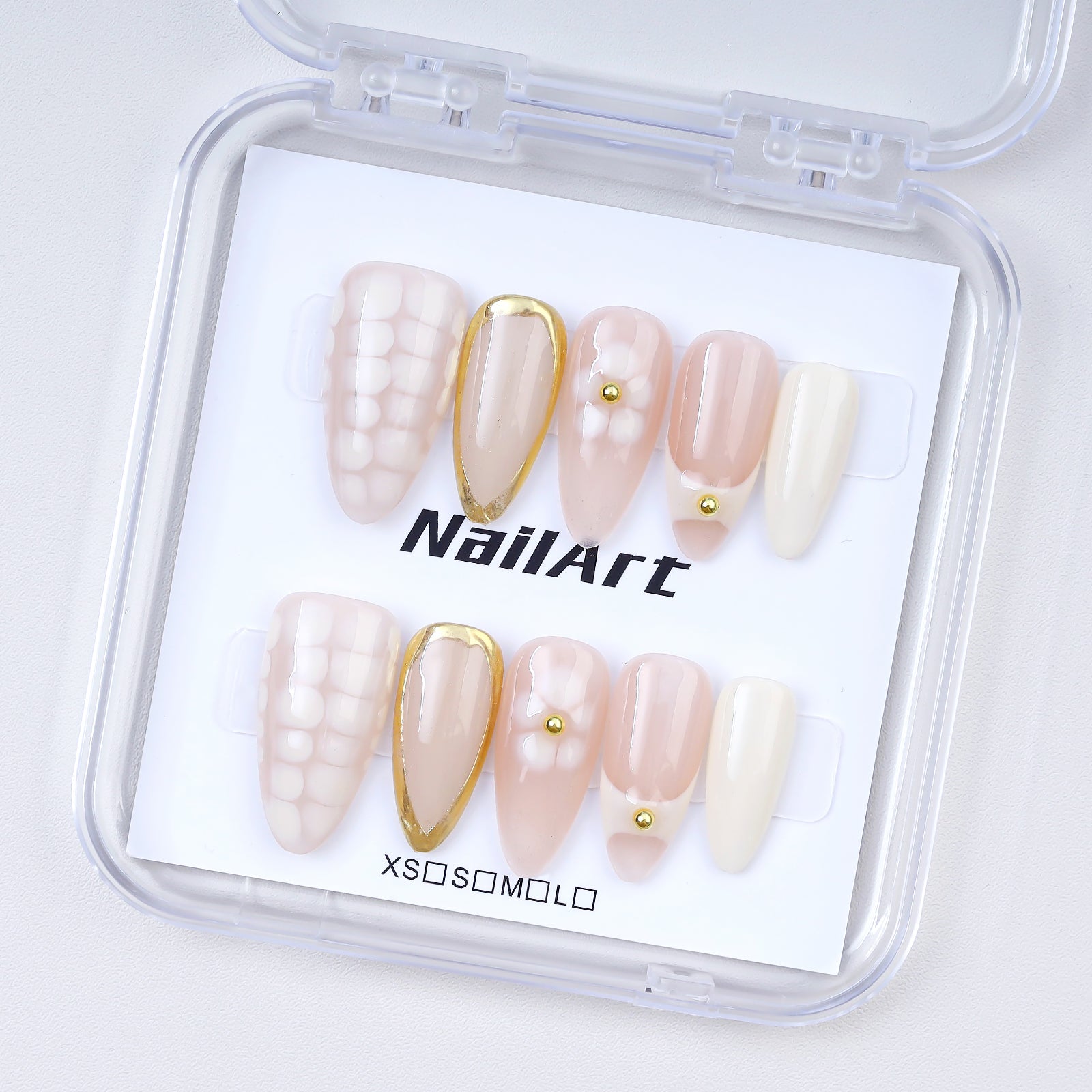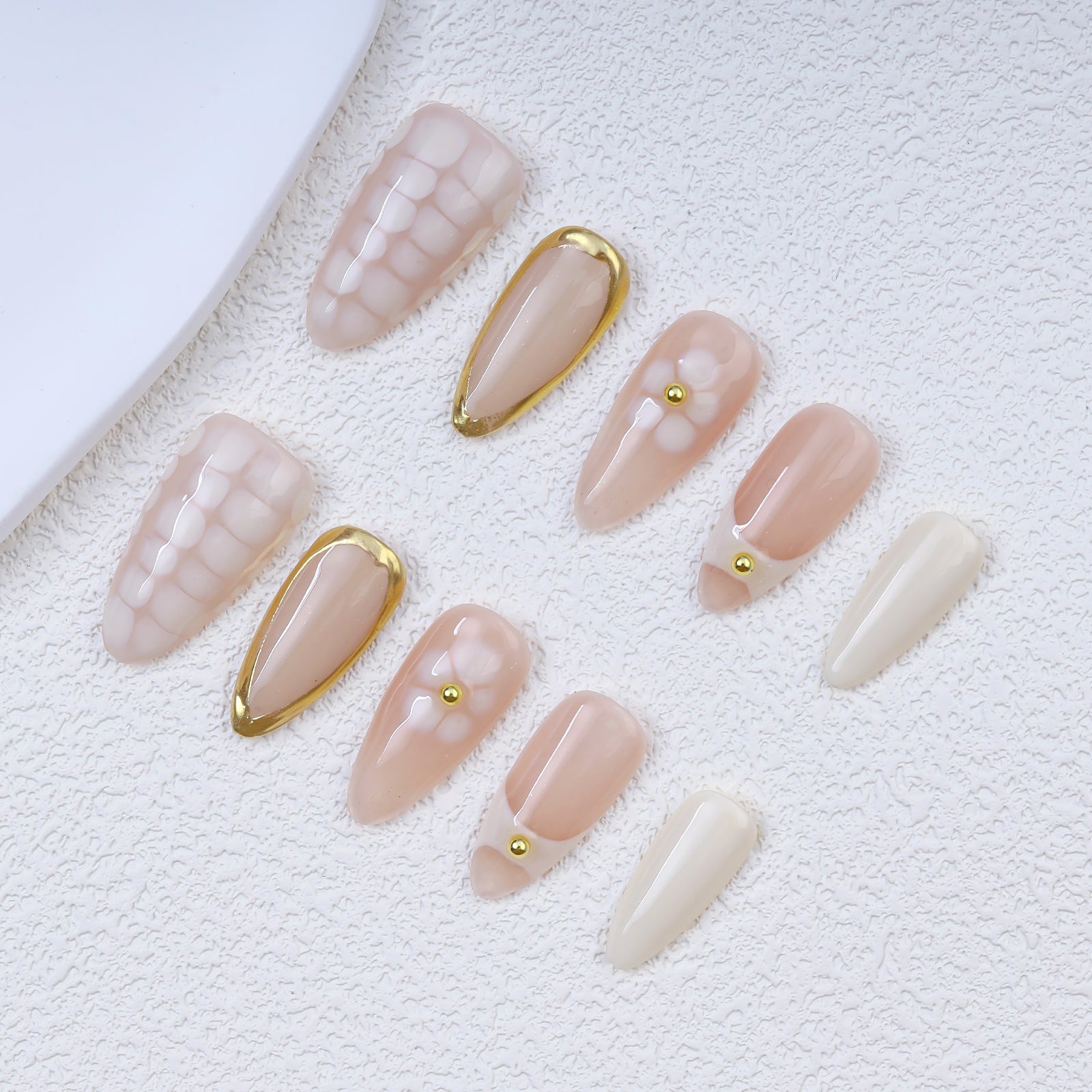 Handmade High-End Full Cover Pre-designed Checkerboard Floral Design Acrylic Press Fingernails 10pcs Artificial False Nail