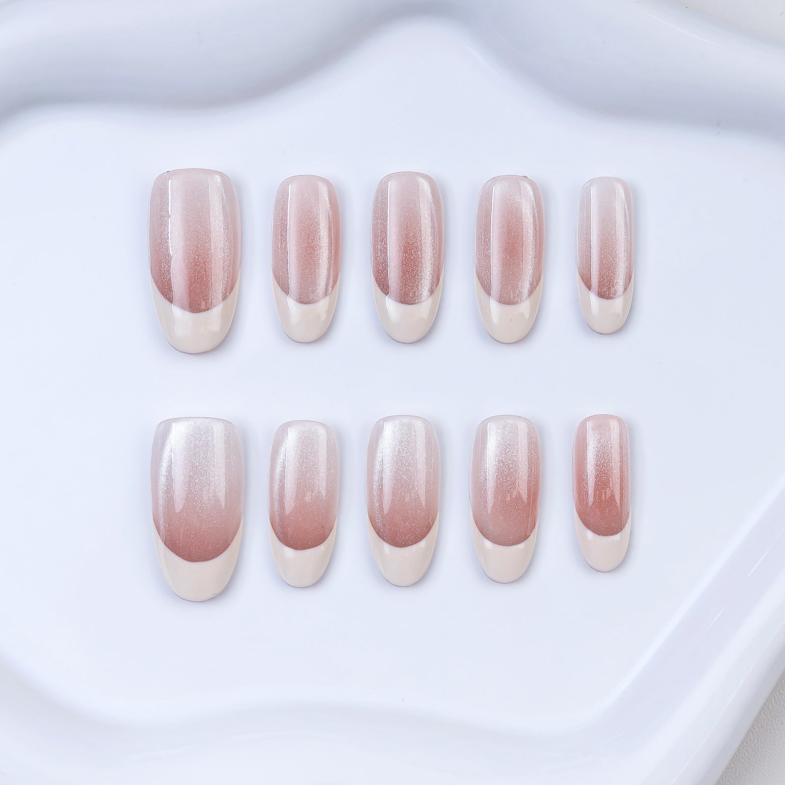 High Quality Wholesale Gradient Pink Glue Artificial 10PCS Handmade French Press on Nails for Women Girls Nail Art Accessories
