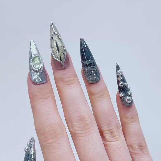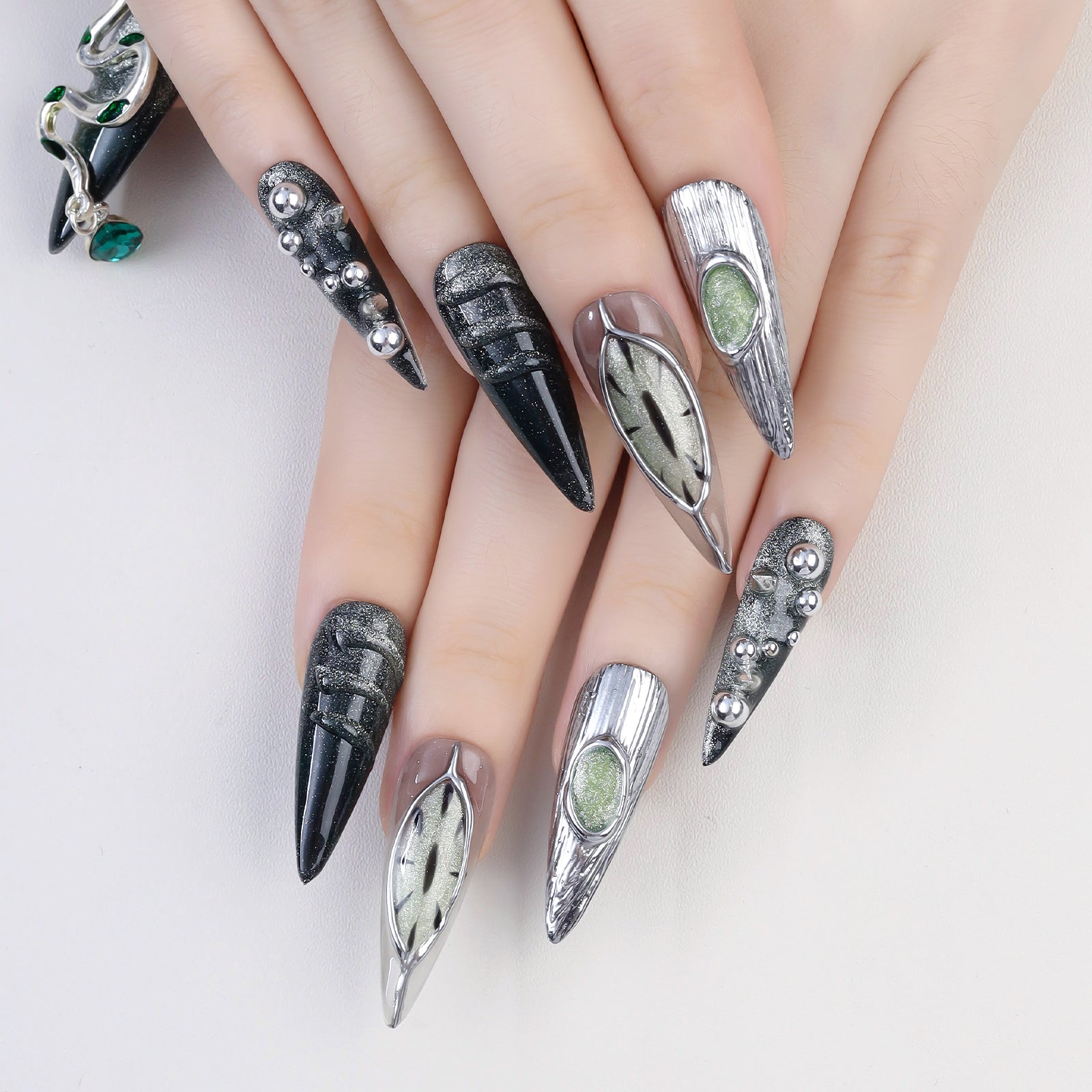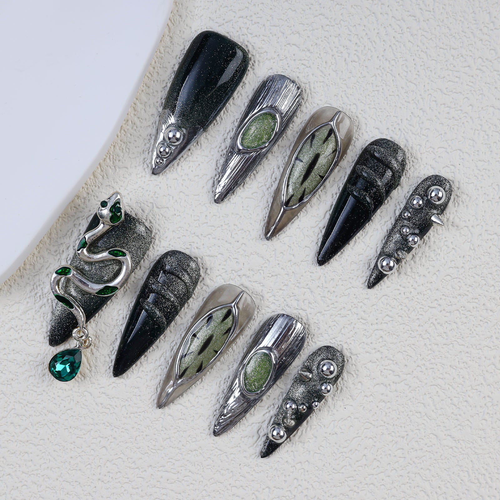 Hot Sale Dark Series Press on Nails Wholesale Slytherin Snake Nail Art Punk Metal Style Devil Eye Hand-wearing Fake Nail Art