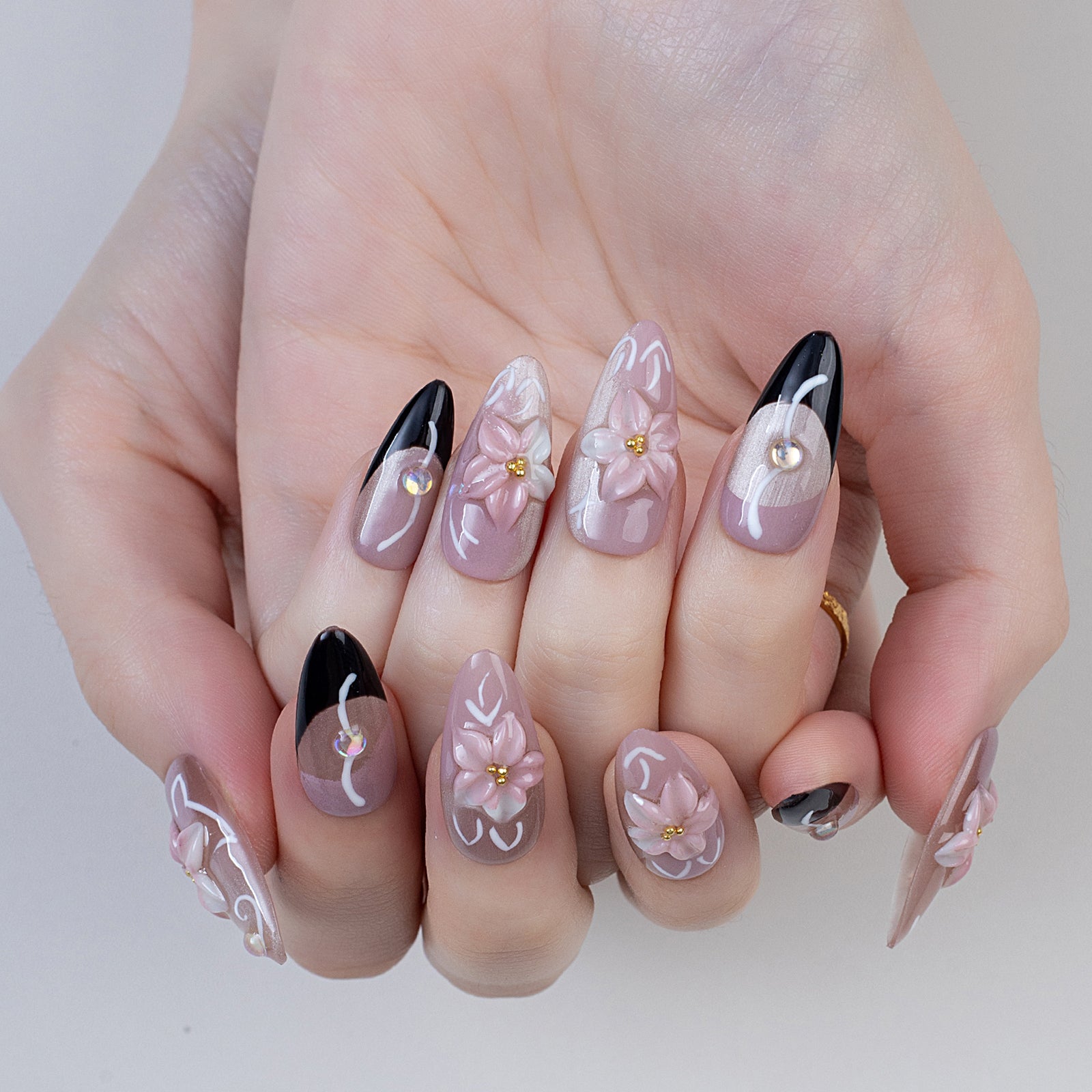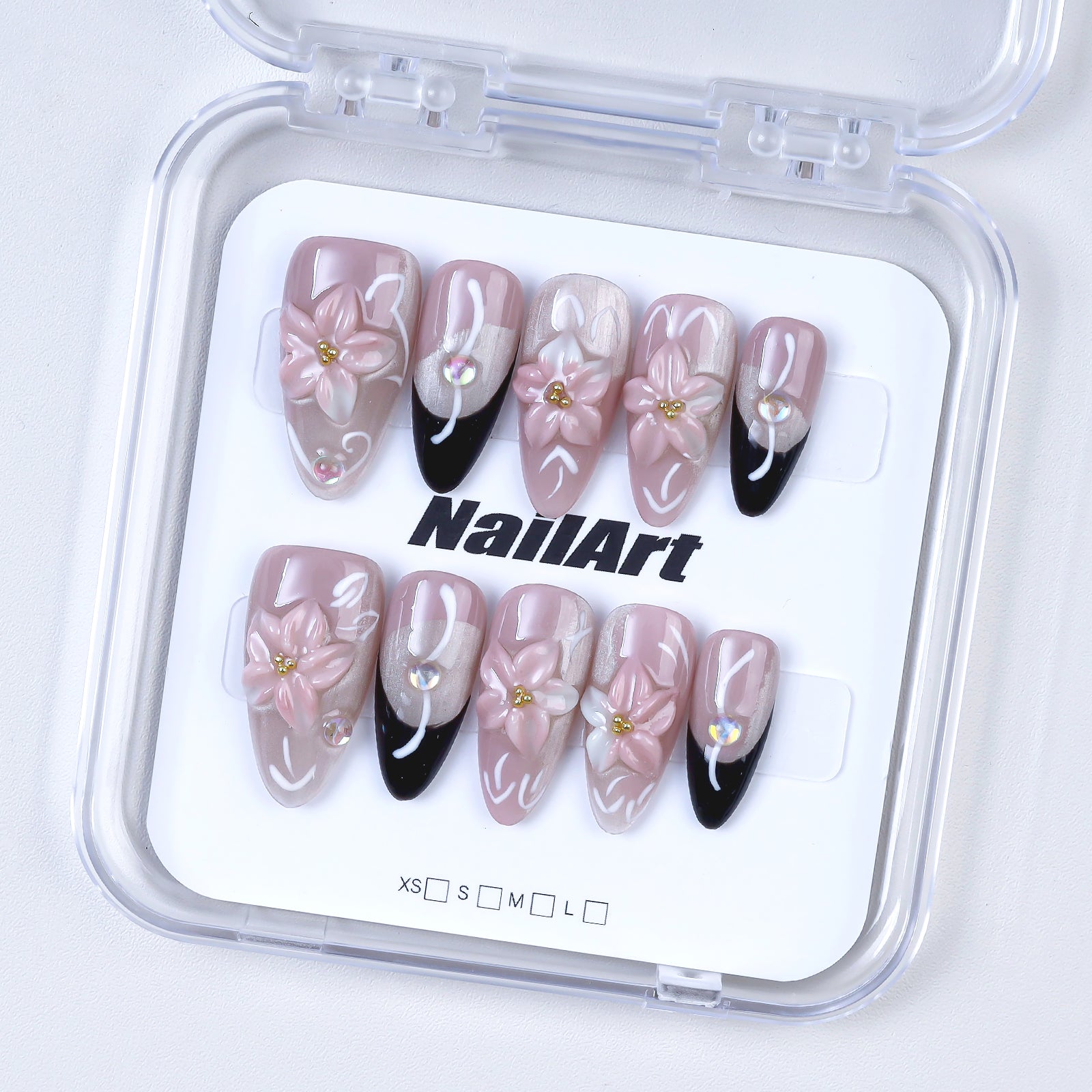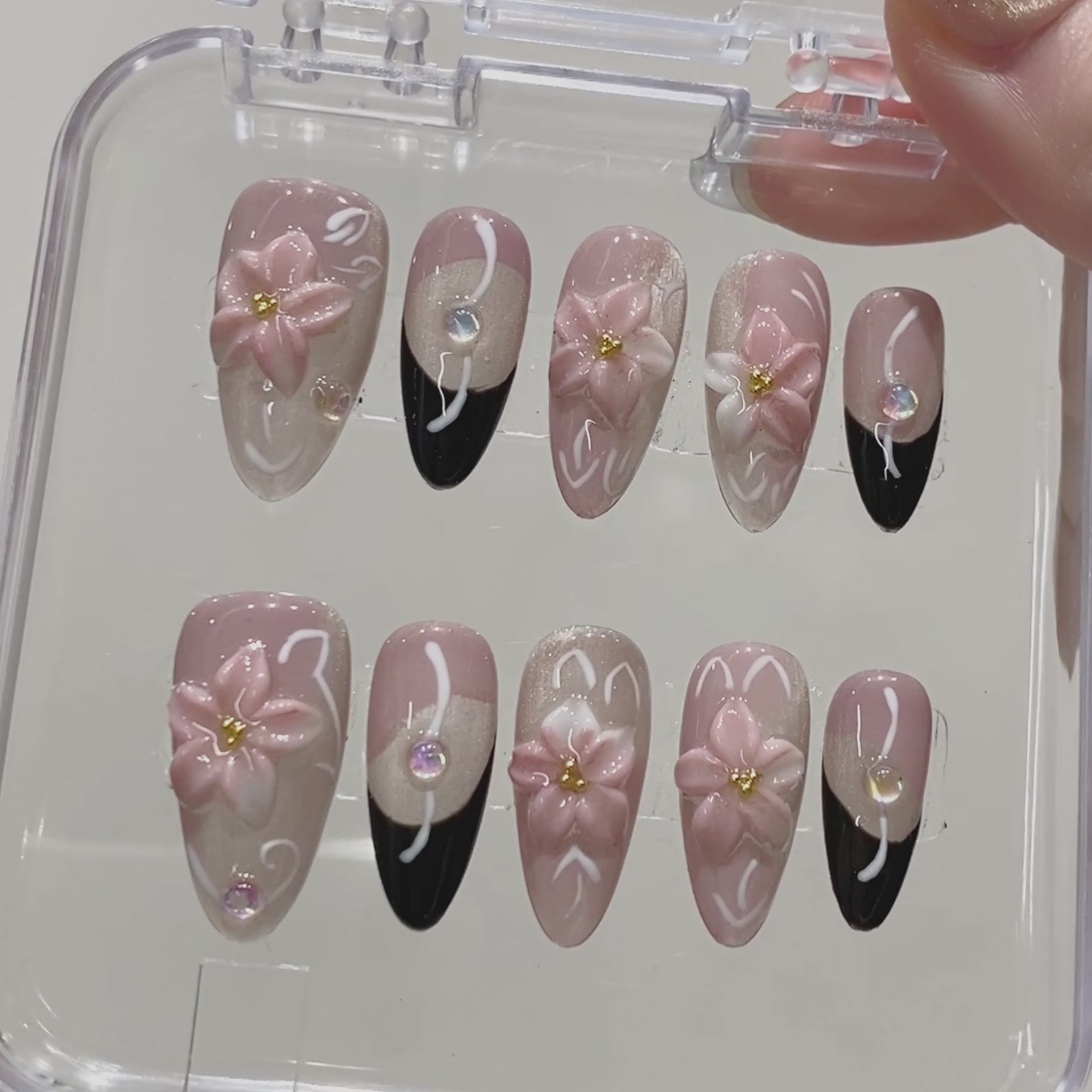 Luxury 3D Floral Cat Eye Design Handmade Reusable Press-On False Nails with Gift Package Luxury Floral False Nails