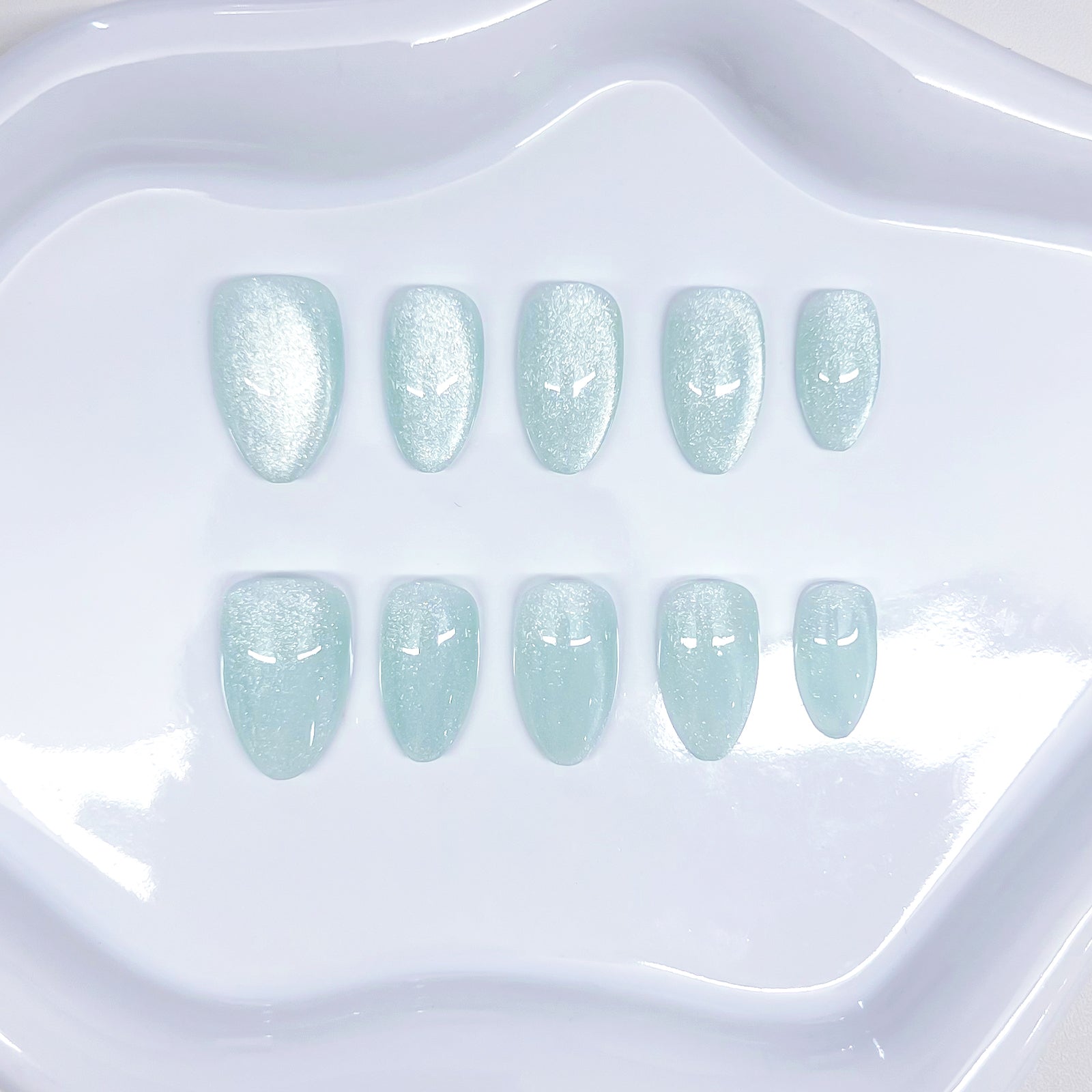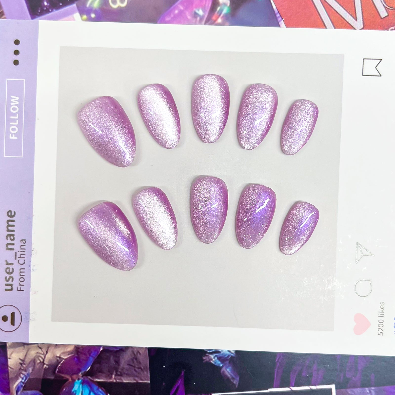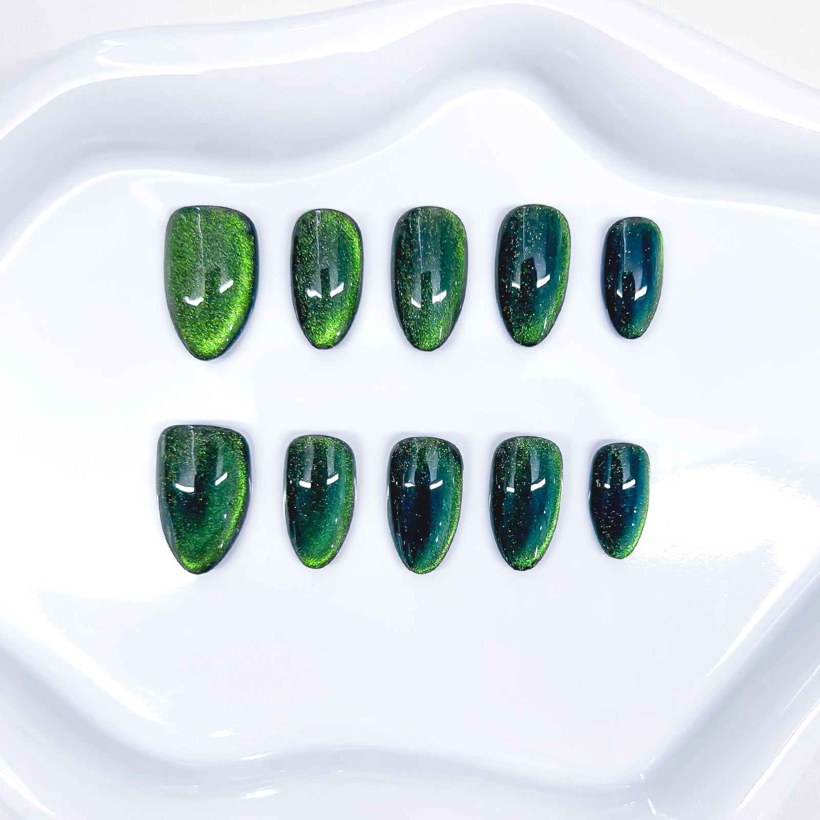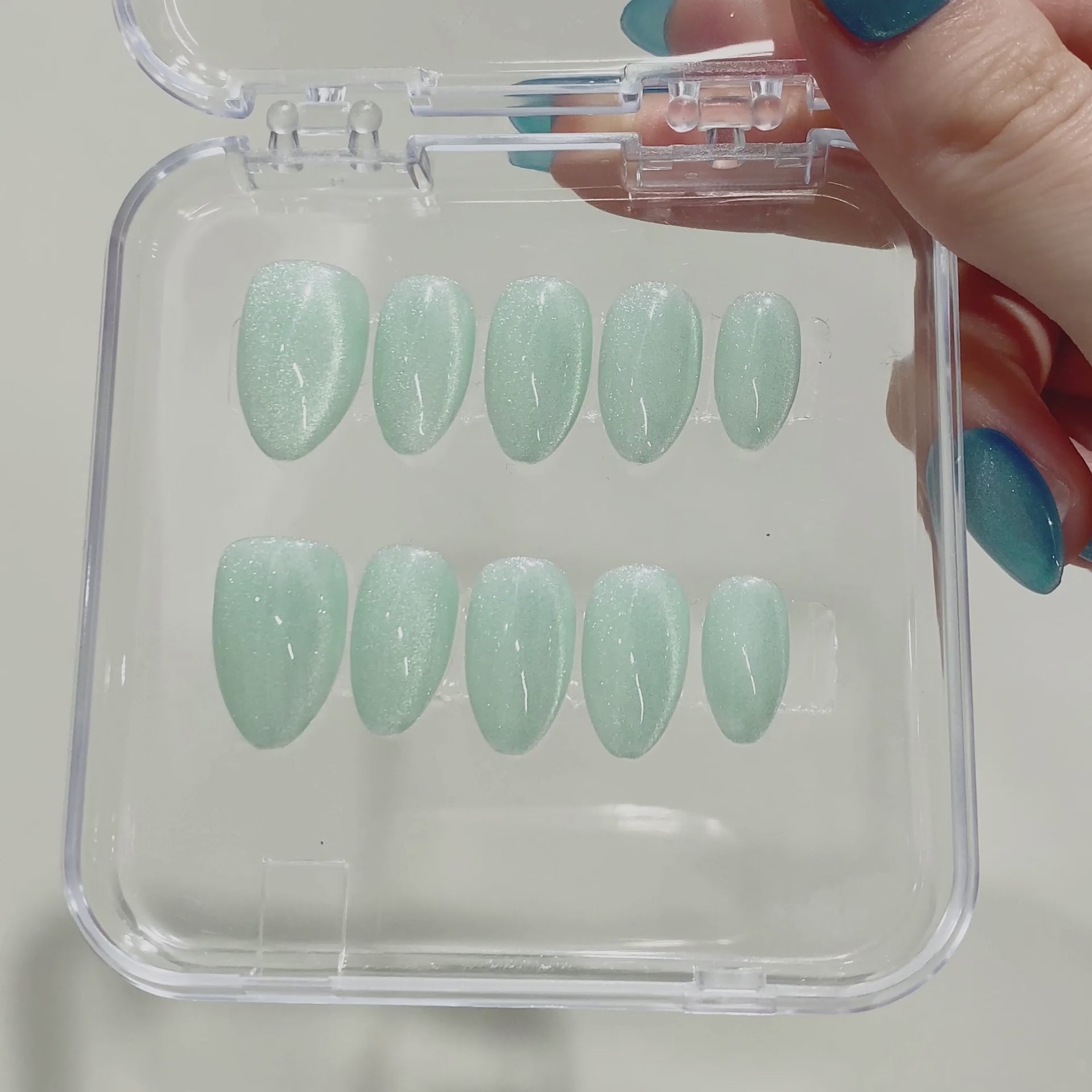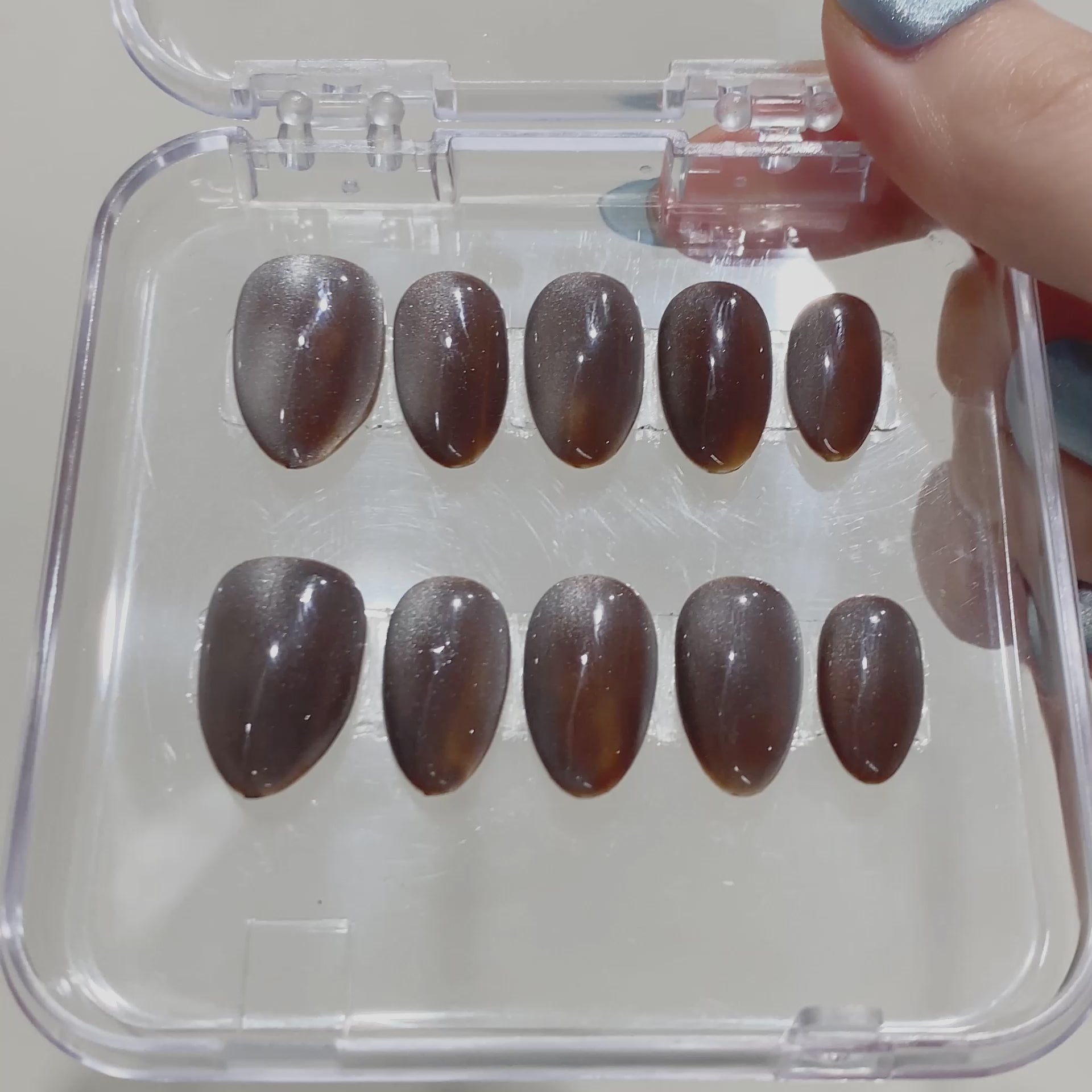 Multi-color Cats Eye Short Almond Handmade Press on Nails 10 Pcs High Quality Wholesale Reusable False Nails with Glue