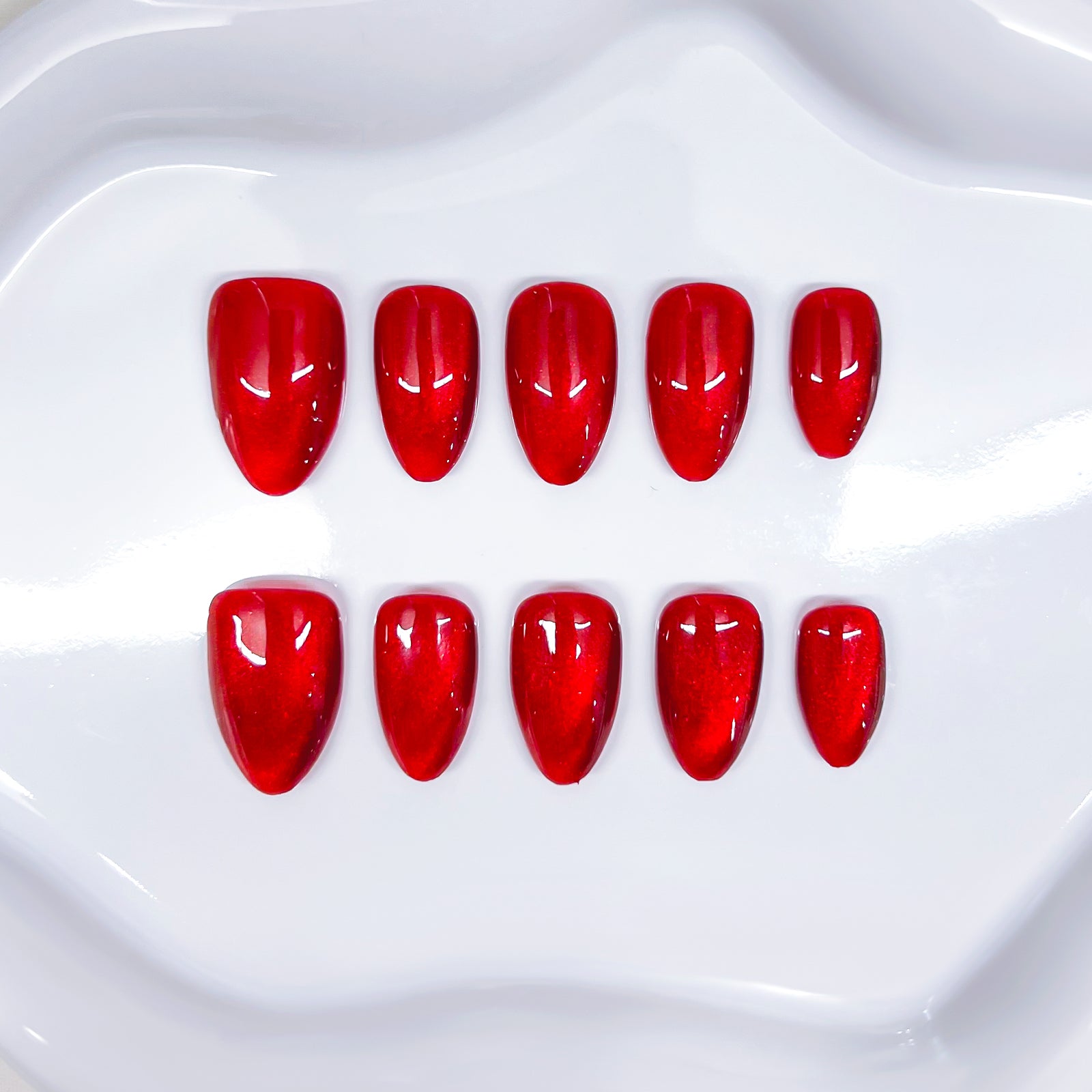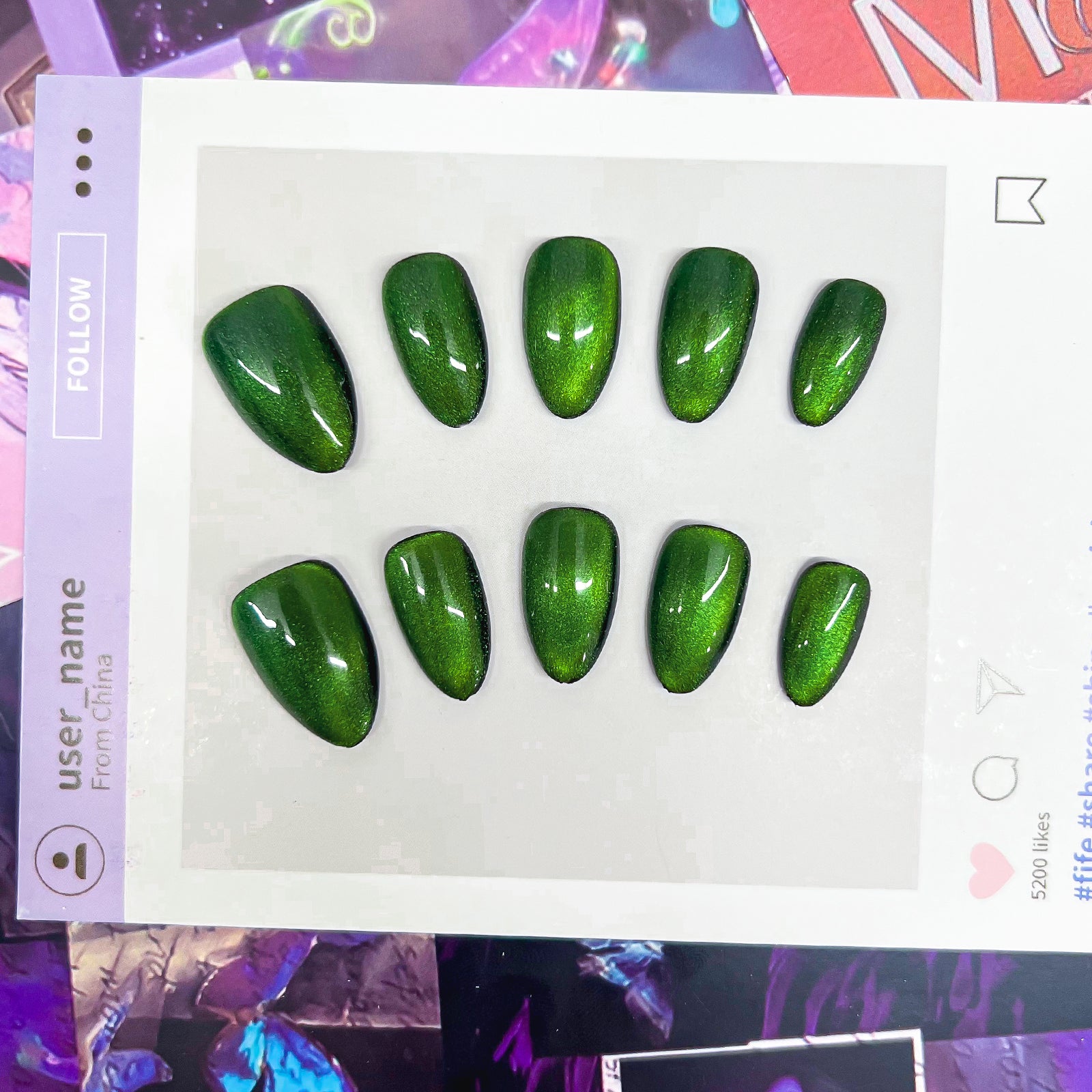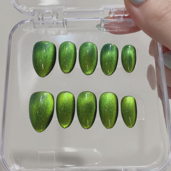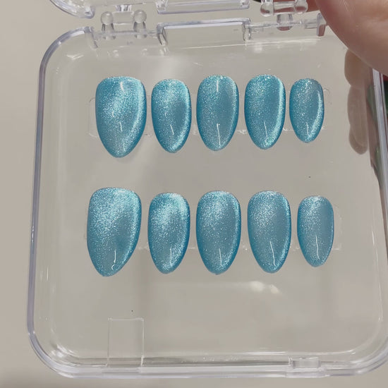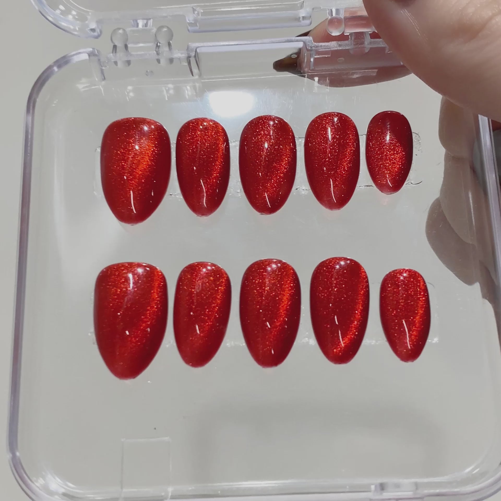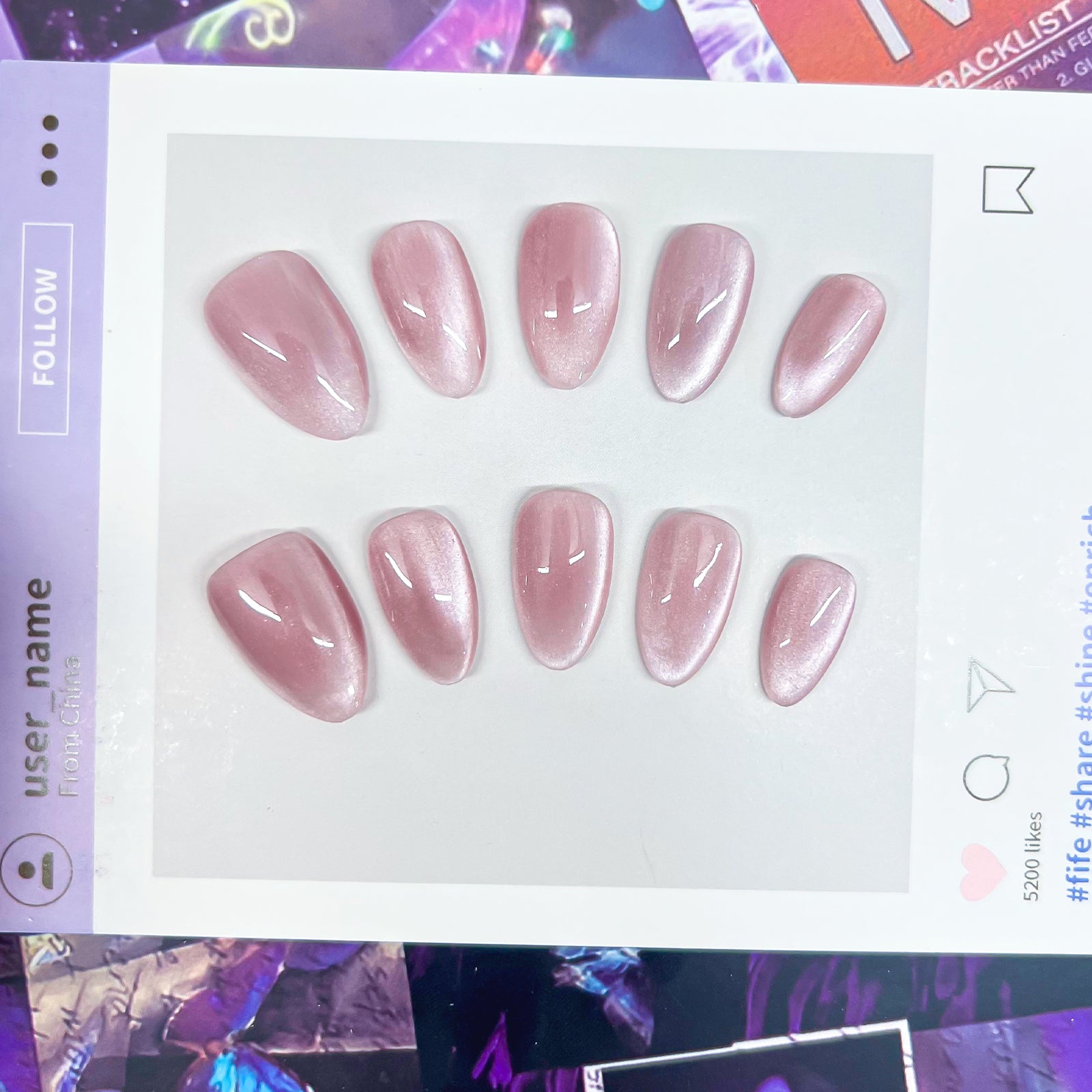 Multi-color Cats Eye Short Almond Handmade Press on Nails 10 Pcs High Quality Wholesale Reusable False Nails with Glue