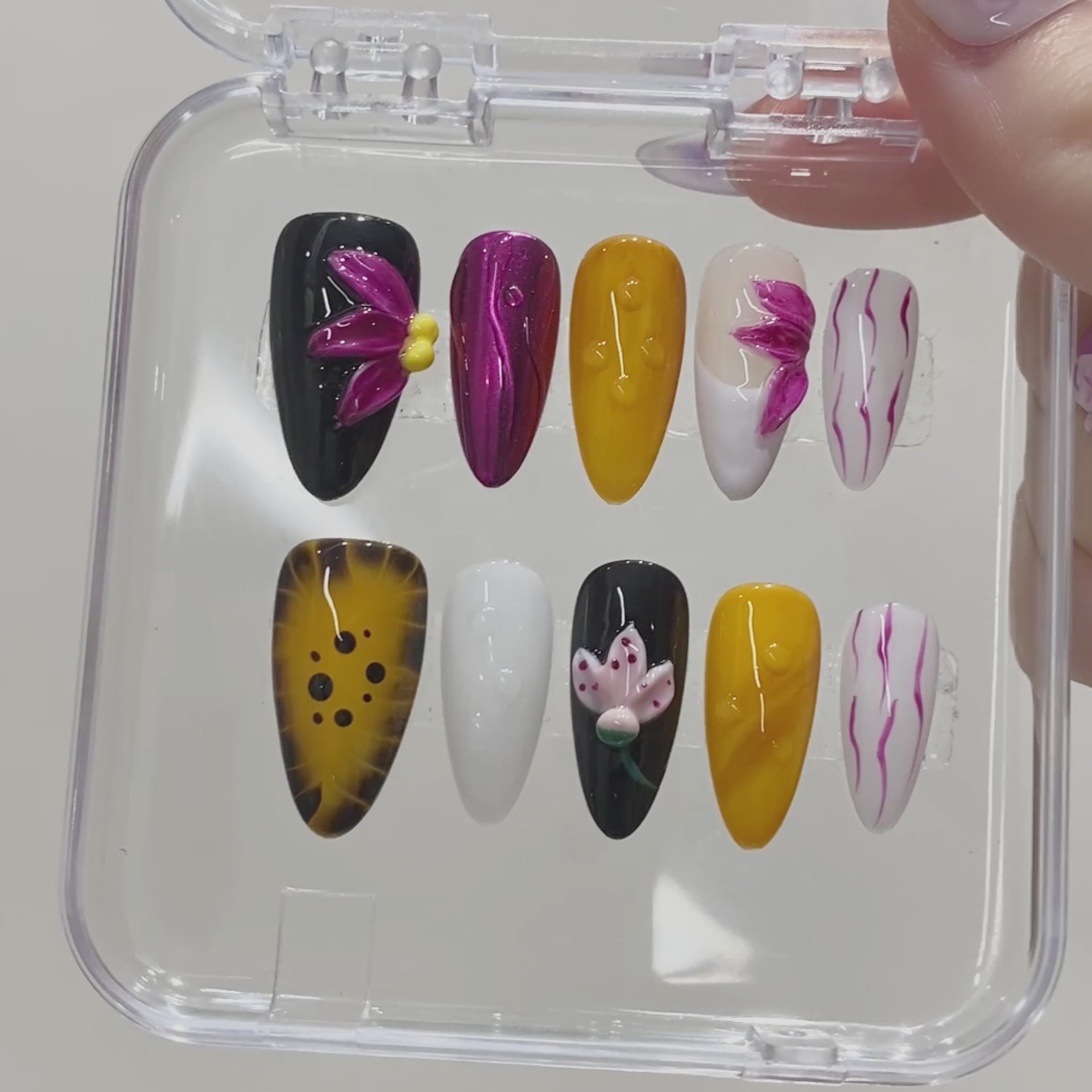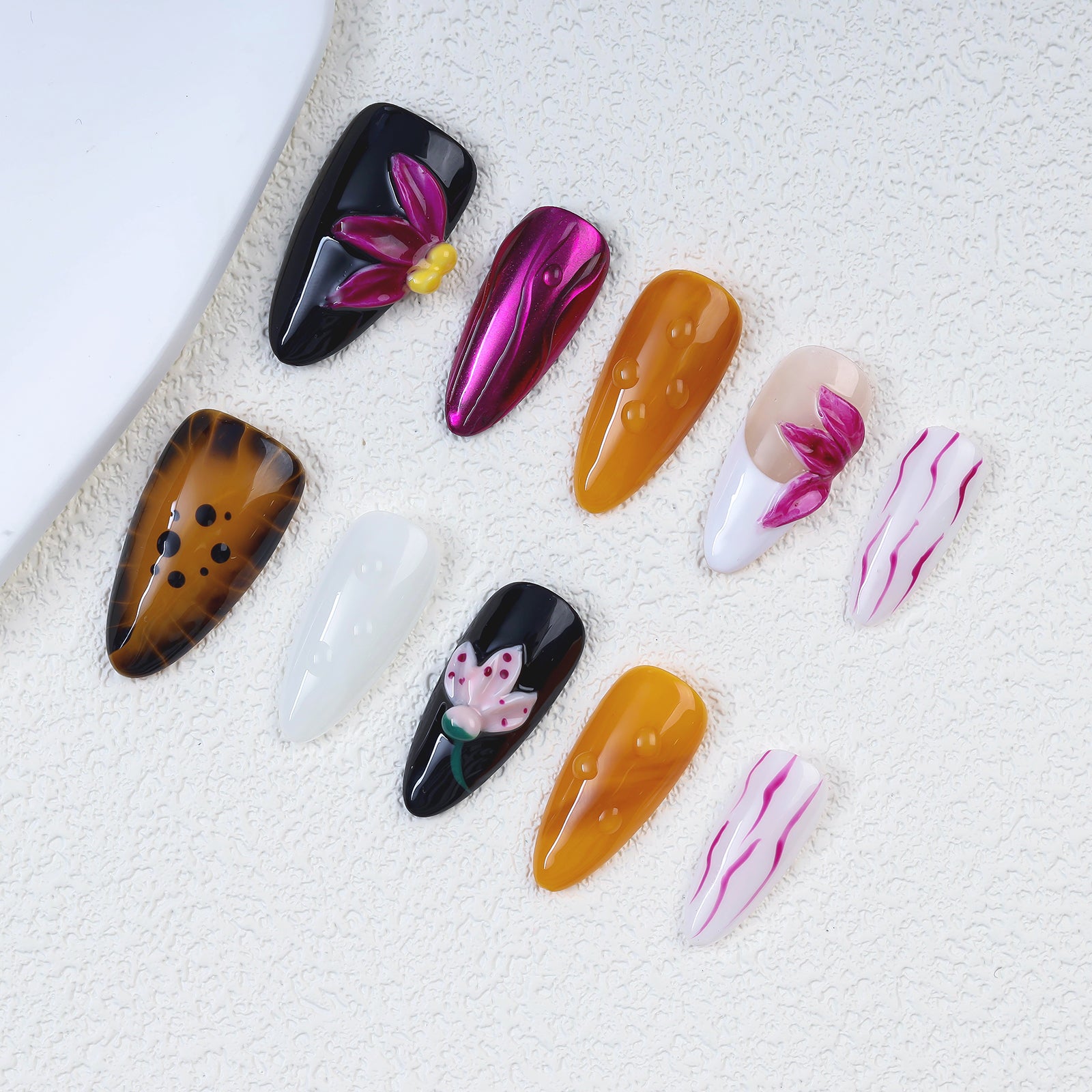New 3d Carving Star Flower Handmade Artificial Fingernails False Acrylic Press on Nails Art Wholesale with Design