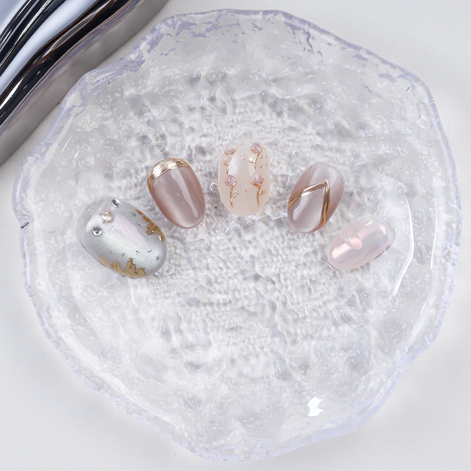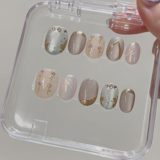 New Arrival Handmade Squoval Press-On Nails Shiny Platinum Cat Eye Design Custom for Fingers Glue