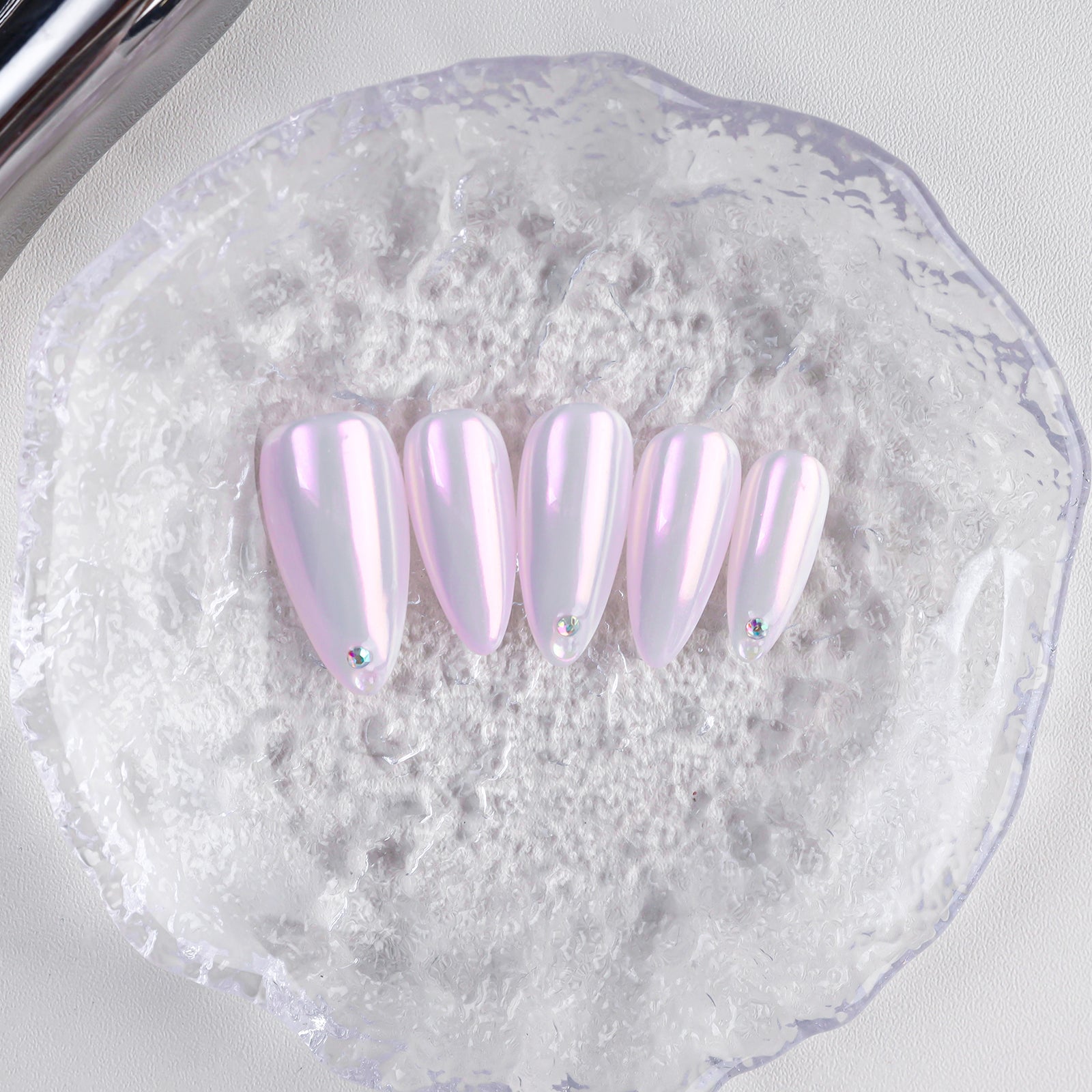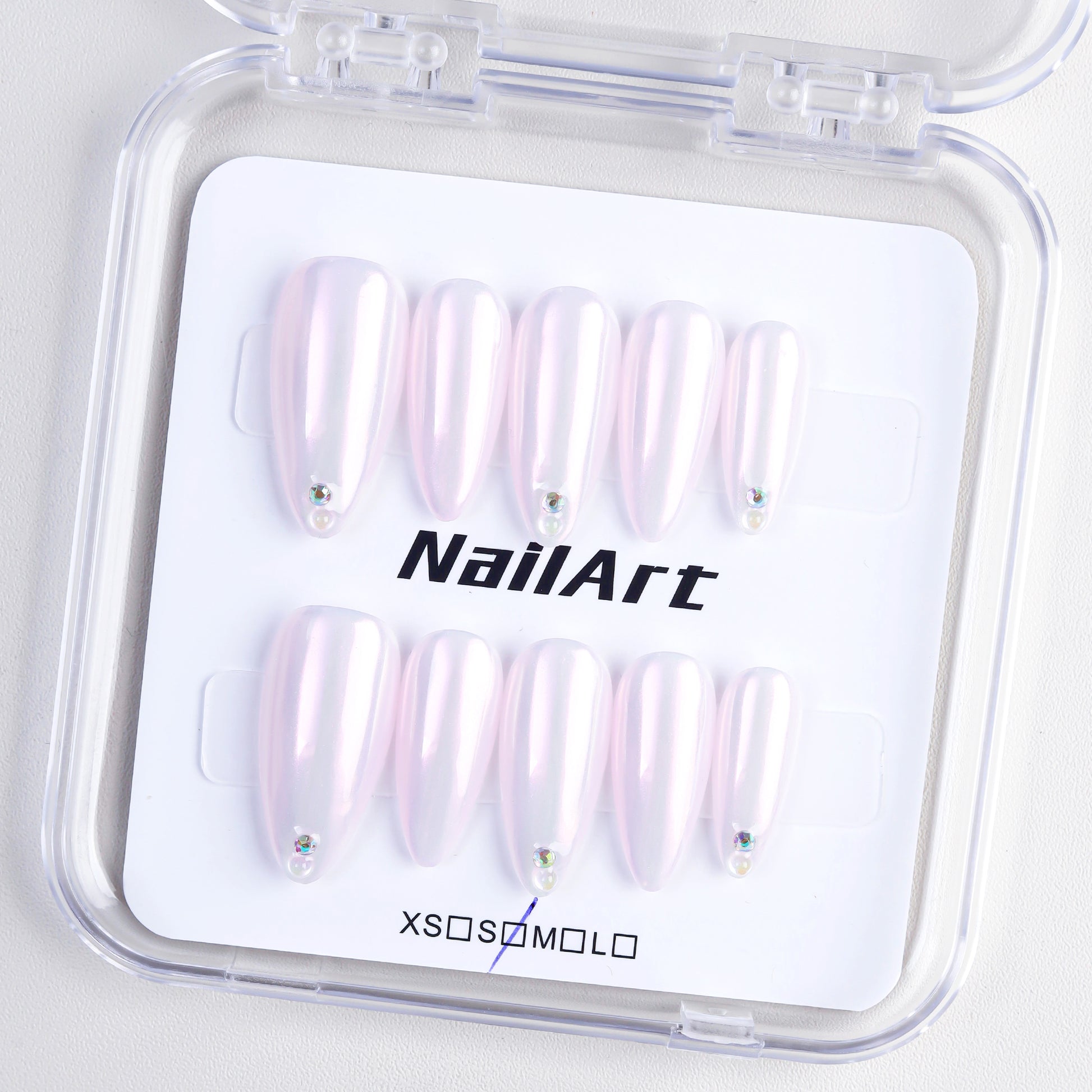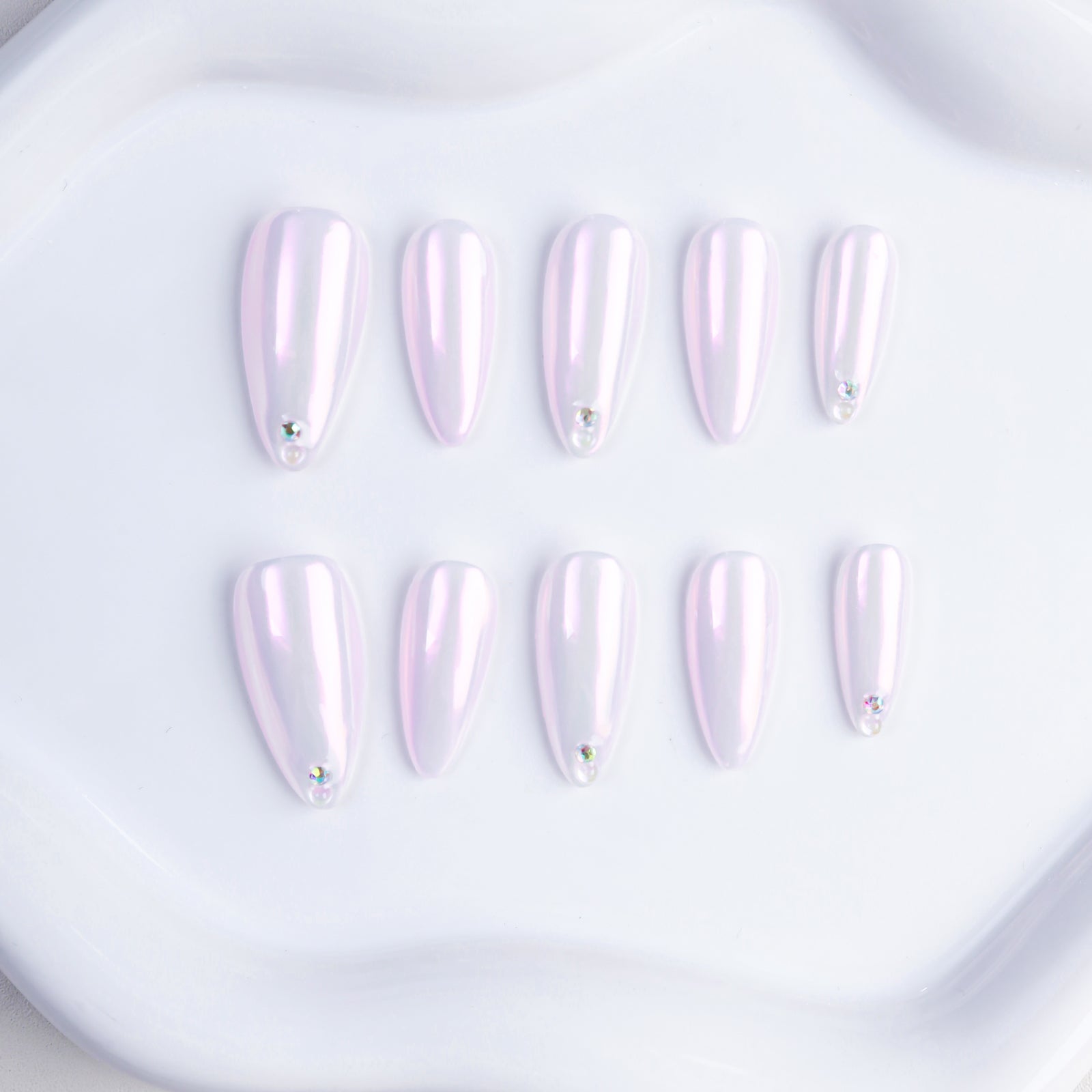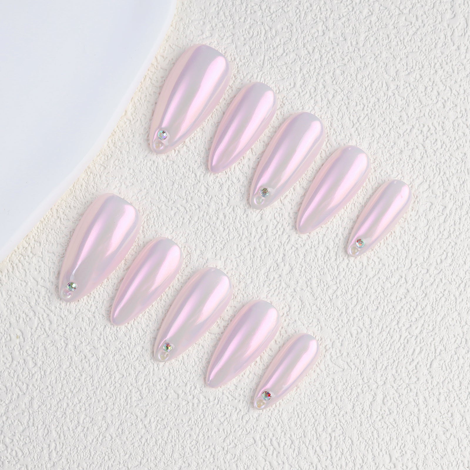 Pink Aurora Medium Length Almond Fashion Pressed Nail Set Solid Color Handmade False Nails Rhinestone Wholesale for Finger