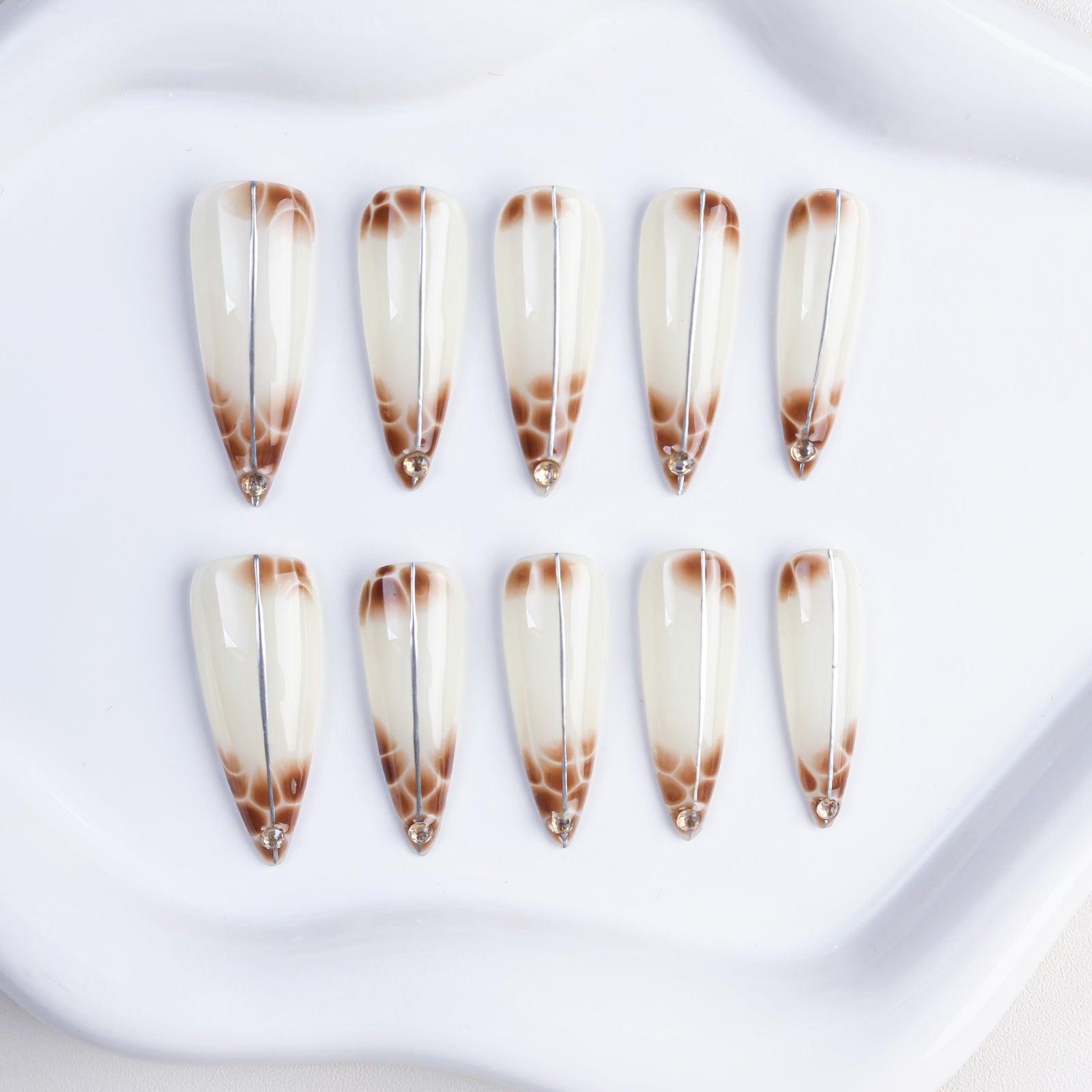 Unique Design Long Handmade Custom Acrylic Press on Nails Wholesale False Nails Artificial Fingernails with Rhinestone