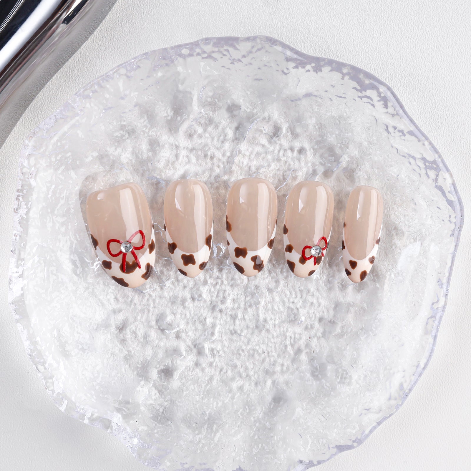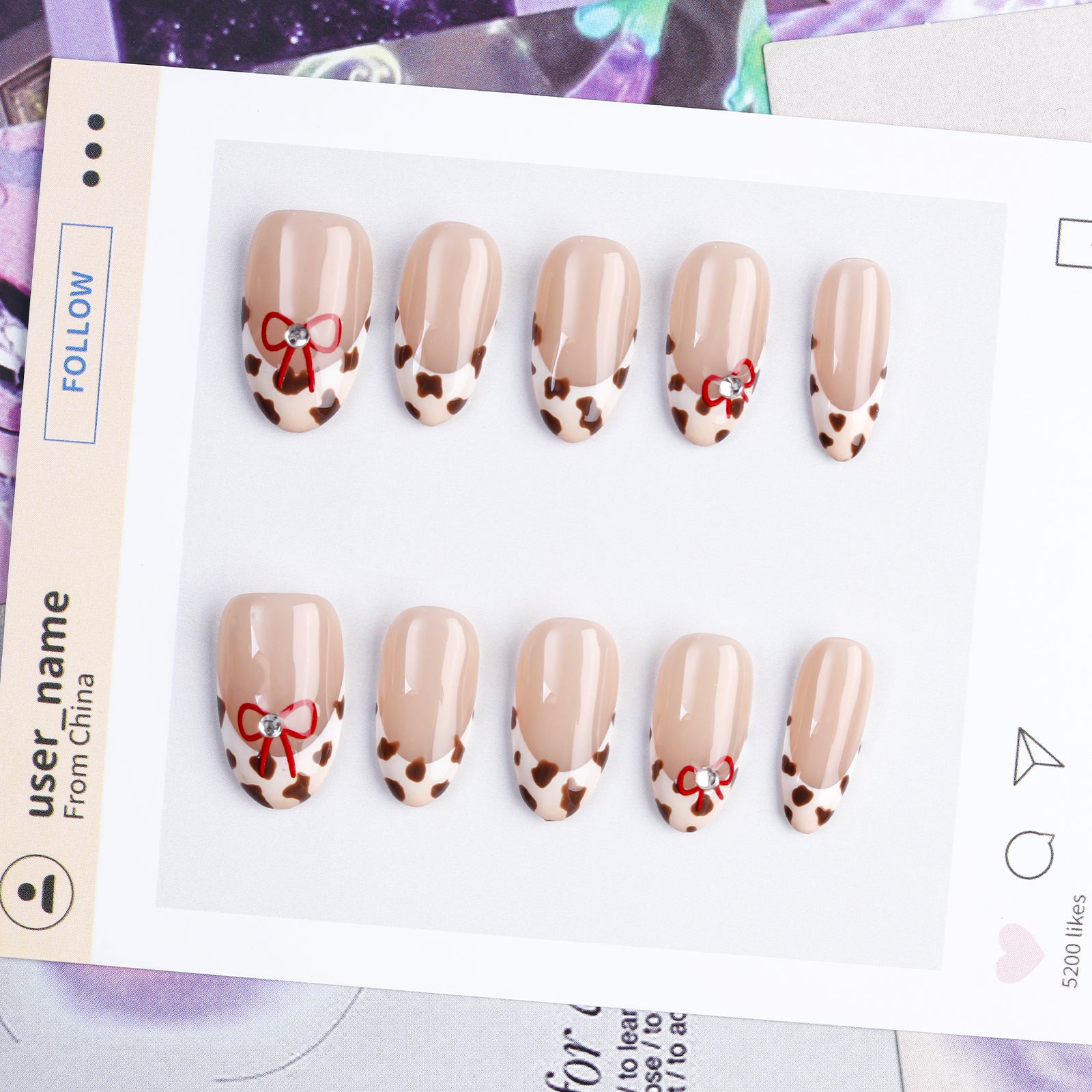 Wholesale Short Medium Almond Leopard Print French Fake Nails Handmade Press-on Acrylic False Nails Soft Artificial Fingernails